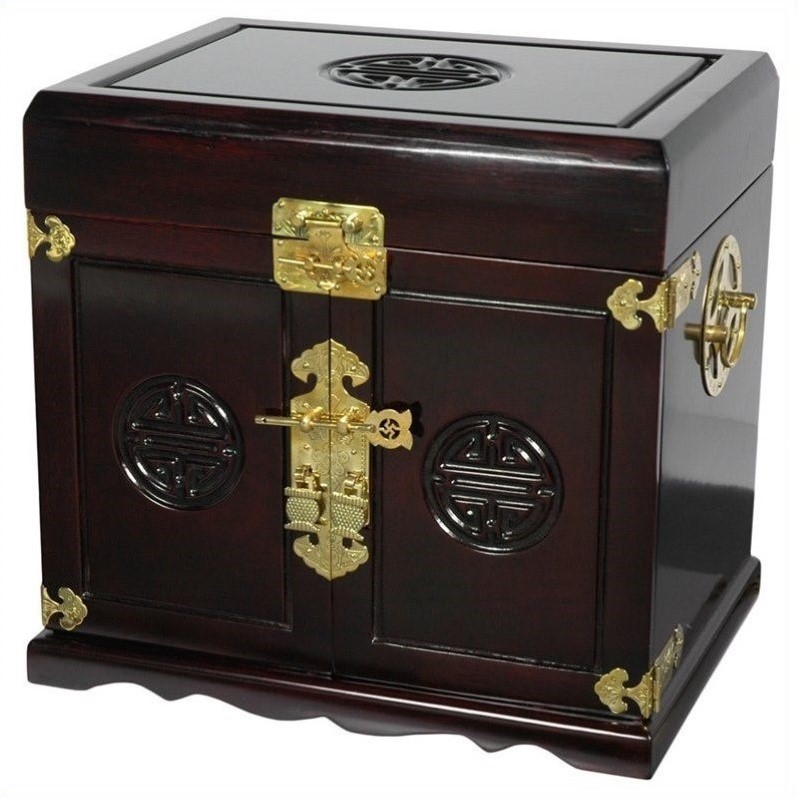![]() Oriental Furniture - Jewelry Boxes - JPNJWEL003DR - This lovely Rosewood Jewelry Cabinet comes in either a warm honey or dark rosewood hand lacquered finish with stunning brass accents and distinctive long life carving on the top and doors. With five drawers for the maximum storage space.Finish: rosewoodIncludes 5 drawers and compartment on topMade of rosewoodCarving on the top and doorsBrass hardwareHand-lacquered finishSpecifications:Overall Dimensions: 12"" H x 12"" W x 9"" DOverall Weight: 11 lbs Price: 269.00 |