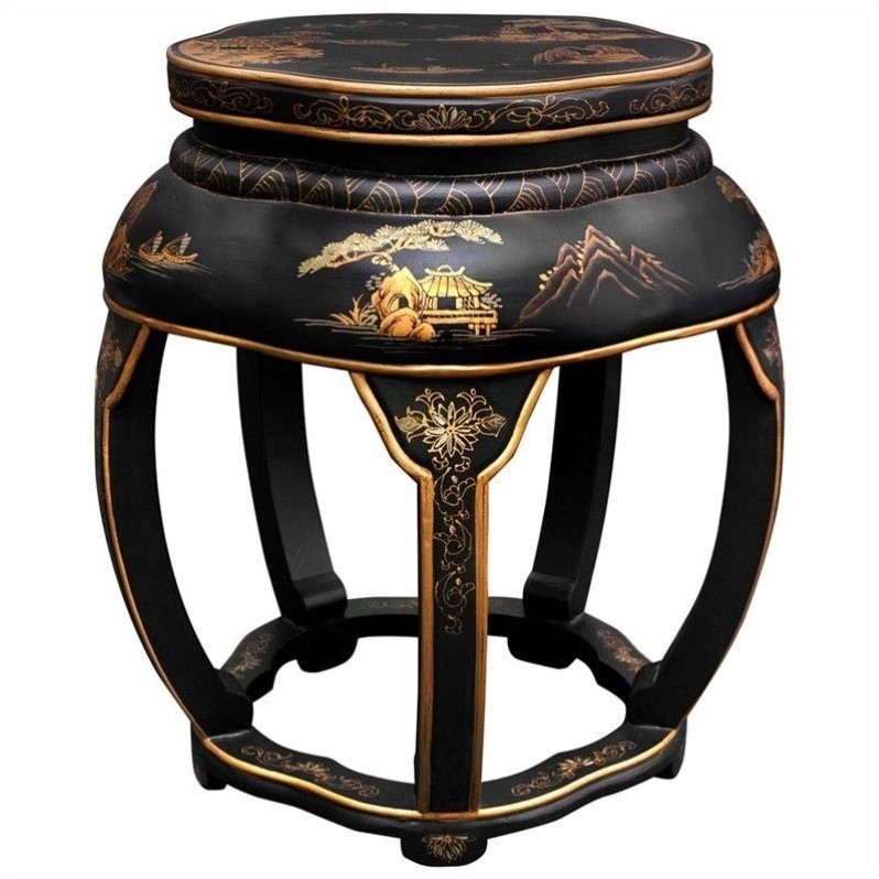 | Oriental Furniture Lacquer Blossom Stool with 5 Legs in Black |