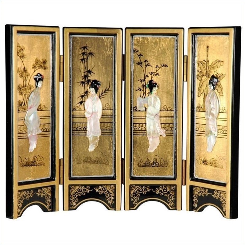 ![]() Oriental Furniture - Room Dividers - LCQTSGM - Add a touch of the East to your home decor with these exquisite mini table screens. Hand-crafted by artisans in the Guangdong province of mainland China. Hand-finished in a rich, clear lacquer. Available in black or gold lacquer featuring a mother-of-pearl applique design. Each panel is 4.5""W x 14""H x 1""D. The total table screen is 18.5""W x 14""H.Finish: goldHand carved mother of pearl ladies12 coat lacquer finishHandcrafted by artisans in guangdongSpecifications:Overall Dimensions: 14"" H x 18.5"" W x 0.5"" DEach Panel Dimension: 14"" H x 4.5"" W x 1"" DProduct Weight: 2lbs Price: 69.00 |