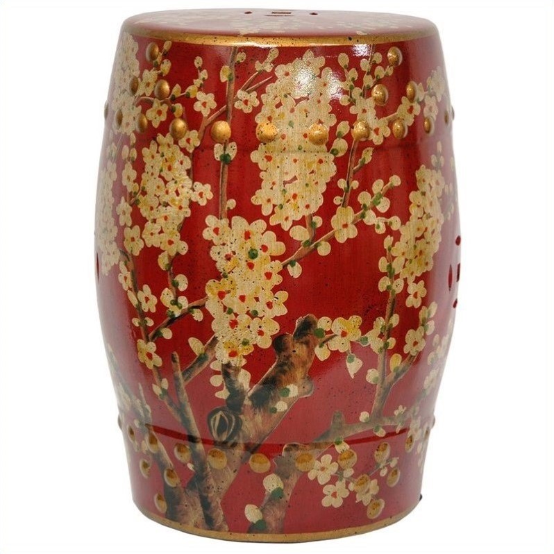 | Oriental Furniture Sakura Blossom Garden Stool in Red |