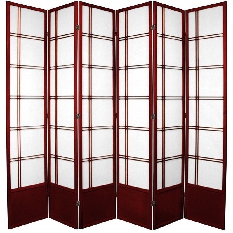 | Oriental Furniture Six Panel Double Cross Shoji Screen in Rosewood |