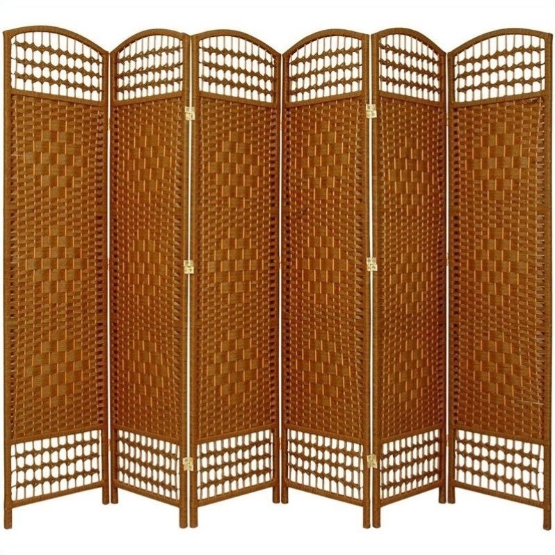 | Oriental Furniture Six Panel Fiber Weave Room Divider in Dark Beige |