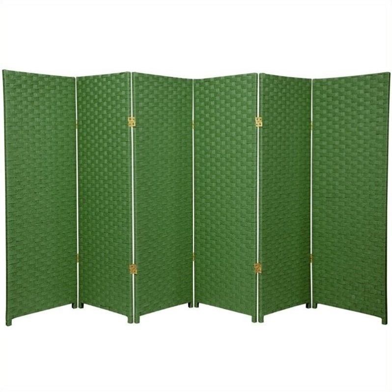 | Oriental Furniture Six Panel Woven Fiber Room Divider in Light Green |
