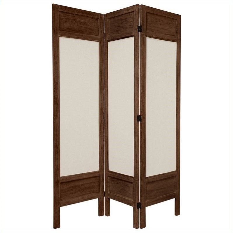 | Oriental Furniture Tall Solid Frame 3 Panel Room Divider in Brown |