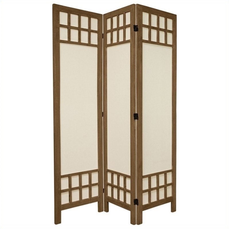 ![]() Oriental Furniture - Room Dividers - FJWPMUS3PBGRY - This is an extra strong floor screen, offering style elements of both Japanese shoji screens as well as traditional American style room dividers. The window pane lattice at the top and bottom of this screen are attractive, and reinforce the structure of each panel. Also, the cotton fabric shade is solid and durable, making this screen lighter than a solid wood panel design. Unique fusion of American and Japanese style elements. Top and bottom lattice reinforce the panel frames. Tear and puncture resistant cotton panel shades. Note: Window pane lattice is on the front side only. We offer two similar designs, in the same sizes and colors The rustic, ""burnt"" wood finishes are unique and attractive, intended to compliment modern American interior design. Distressed and antiqued wood finishes are popular as they remind us of the long lasting quality of the solid wood frames underneath. These folding floor screens provide great quality and attractive design at excellent prices, delivered to your door.Finish: grayMade of cotton fabric and woodUnique fusion of American and Japanese styleTop and bottom lattice reinforceTear and puncture resistant panel shadesWindow pane lattice is on the front side onlySpecifications:Overall Dimensions: 67"" H x 51.75"" W x 0.75"" DProduct Weight: 12lbs Price: 159.00 |