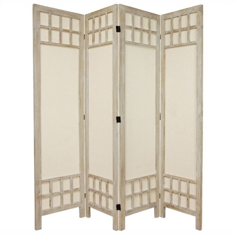 | Oriental Furniture Tall Window Pane 4 Panel Room Divider in White |