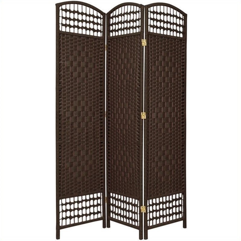 | Oriental Furniture Three Panel Fiber Weave Room Divider in Dark Mocha |