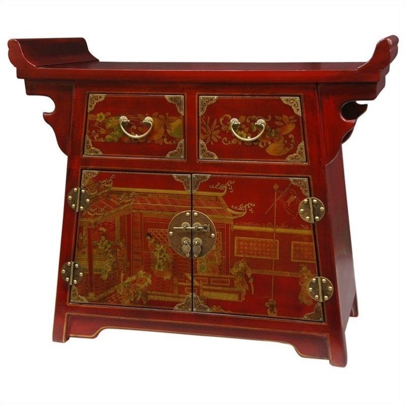 | Oriental Furniture Village Life Altar Accent Chest in Red |