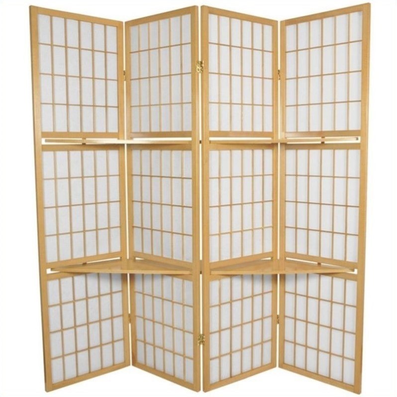 | Oriental Furniture Window Pane with Shelf Room Divider in Natural |
