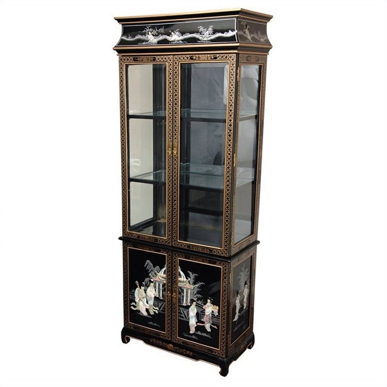 | Oriental Mother Of Pearl Ladies Lacquer Curio Cabinet in Black |