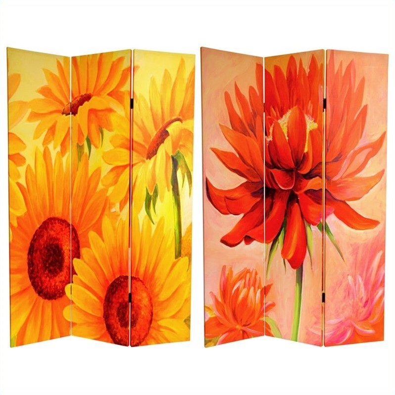 ![]() Oriental Furniture - Room Dividers - CANPOPPY - Stunning floral images of huge painted flowers in 19th century impressionist style introduce bold yellows, oranges, copper and green, with powerful, bigger than life imagery. A bright, beautiful accent for any room- living room, bedroom, dining or kitchen. A wonderful burst of color and shape that lifts the spirits of the space and the occupants. Each side has a different image as shown. Carefully constructed reinforced wood frames- hardy, kiln dried Spruce- covered top to bottom, front, back, and on the edges with a stretched poly-cotton blend canvas. Printed with high saturation ink to create a beautiful, long lasting, vivid image. Almost entirely opaque- very little light can pass through the double layer of canvas, offering complete privacy, very tough and durable, yet light and portable. Great for dividing space, providing privacy, hiding unsightly areas or equipment, background for plants or sculptures, or defining a cozy space. Available in 3 panels only, provides about 3 1/2 feet of width displayed as shown. Simple, beautiful decorative art, with a vintage feeling. A strong durable and practical high quality room divider great for home, office, or small business.Finish: multicolorMade of kiln dried spruce woodCovered with poly-cotton blend canvasPrinted with high saturation inkVery little light can pass through the layers of canvasEntirely opaqueVery tough and durableLight and portableSpecifications:Overall Dimensions: 71"" H x 48"" W x 1"" DProduct Weight: 10lbs Price: 129.00 |