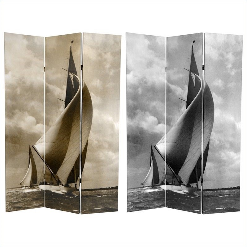 | Oriental Sailboat Double Sided Room Divider in Black and White |