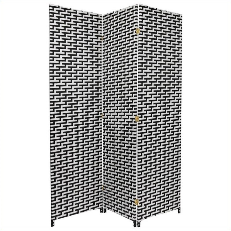 | Oriental Woven Fiber Room Divider with 3 Panel in Black and White |